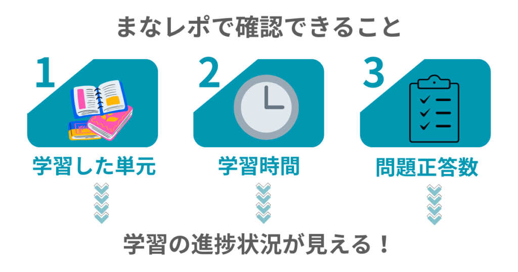 スタディサプリは、子どもの学習状況をメールやwebで確認できる「まなレポ」という機能があります。